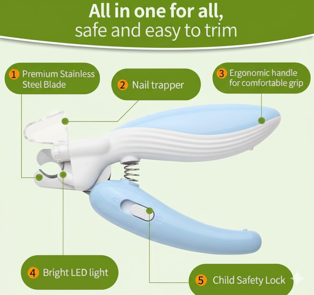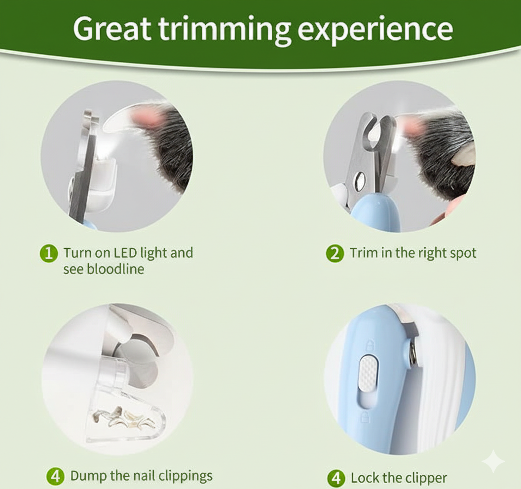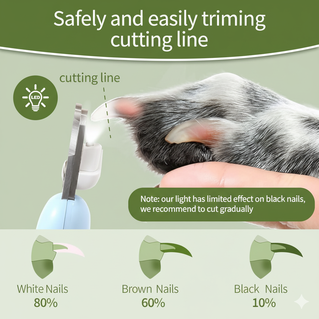 No more guessing or worrying about over-cutting. The built-in LED light shows you exactly where to trim, giving you the confidence to keep your pet’s nails neat, healthy, and pain-free.
